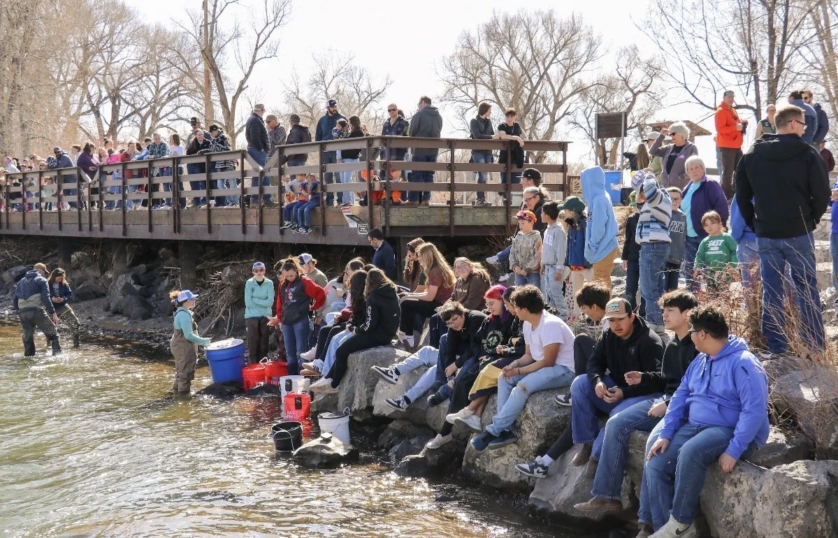 The March 12 fish release in the San Luis Valley brought together a strong network of community partners, including Rio Grande Hospital, Colorado Parks and Wildlife, the Division of Water Resources, the U.S. Forest Service, Rio Grande Headwaters, and the Rio Grande Water Conservation District. Watershed Ambassadors played an important role throughout the day, guiding younger students in fly casting and offering hands-on support during activities. Watching high school students mentor younger participants highlighted the growing conservation leadership pipeline the program is working to build. Kevin Midler the Youth Education Chair in the San Luis Valley chapter said, “Programs like Trout in the Classroom go far beyond raising fish they are helping cultivate the next generation of conservationists in the San Luis Valley.”